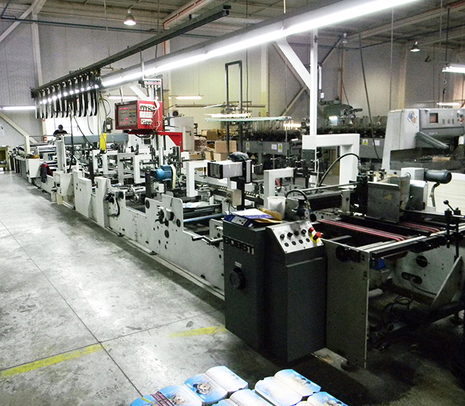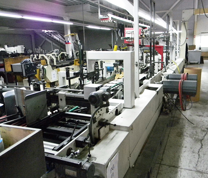 • 1 Pegadora Automática con formato mínimo de 15 cm de Ancho y 6 cm de largo. Formato máximo de 100 cm de ancho y 70 cm de largo, más 8 puntos de pegado. El Área cuenta con un sistema de pegado lateral de 4, 6, 8 ángulos, fondo automático, doble pegado, inyectores, fresado en caso de zonas que no cuenten con reserva. Velocidad 450 mt/min.