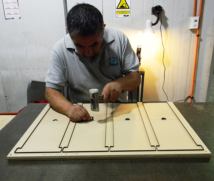 Caladora Láser, que funciona con un sistema de calado con rayo láser fijado a una mesa móvil de última generación. Velocidad de recorrido por sobre 1 mt /min., insuperable frente a otro tipo de máquinas de calado convencional. Con un formato de 1.20 mt x 1.80 mt ideal para elaborar un buen Layout y de esta forma optimizar la madera a ocupar calando varios formatos indistintamente.
